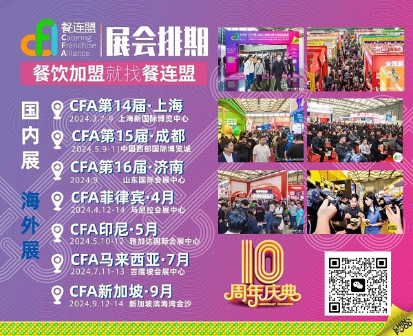 上海*大规模加盟展,3月7-9日,坐拥黄金招商旺季季,为广大品牌强势开启招商旺季。在一个满是鱼的池塘里钓鱼总比在大海里广撒网更具成效。CFA餐连盟(原CHINA FOOD)于2015年创办,是中国**专注餐饮连锁的加盟展会。专注餐饮连锁,深度赋能**招商。致力于持续推动中国餐饮品牌连锁化发展,推动餐饮千城万店。CFA:定位中国餐饮开年第*展,每年3月从上海出发,布局全国市场。作为中国餐饮连锁风向标、上海蕞大加盟展、中国餐饮投资加盟**平台。“CFA餐连盟”聚焦餐饮各赛道众多头部品牌、**品牌、热门品牌及广大餐饮投资人的热切目光,无疑成为各大展商**的品牌发布、招商加盟、渠道代理、合作联营的交互平台。CFA:专注餐饮招商,助力品牌千城万店 因为专注,所以** 餐饮加盟 就找 CFA餐连盟