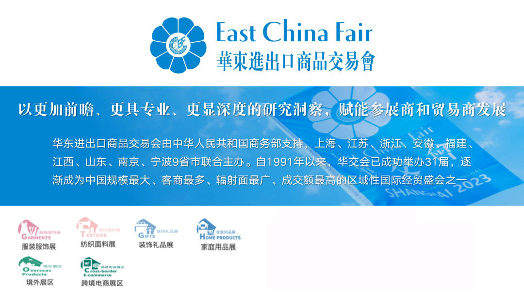 2025第33届华东进出口商品交易会(简称“华交会”)将于2025年3月1日至4日在上海新国际博览中心举行,展示了其作为中国重要的区域性国际贸易平台的地位。由多个省市联合主办和承办的华交会,覆盖了广泛的展品类别,从服装服饰到家用纺织品,再到皮革制品、装饰礼品以及日用消费品等,吸引了大量的国内外商家参与。